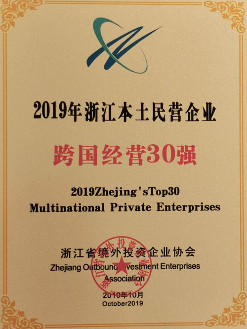 近日,浙江省境外投資企業協會發布了“2019年浙江本土民營企業跨國經營30強”榜單,東華鏈條集團首次上榜,排名第27位。