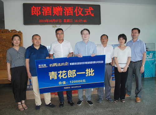 隨后舉行了贈酒儀式,與會領導進行了合影留念,并參觀了公司南區生產車間。本次郎酒集團向我公司贈送了價值12萬的系列郎酒。