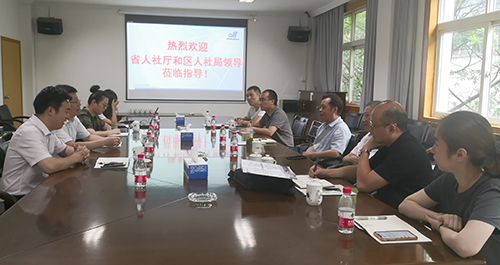 6月10日,浙江省人社廳信息處周劍揮處長、余杭區(qū)人力資源和社會保障局陳勇局長等一行到東華調(diào)研和三服務。集團副總經(jīng)理廖杭州、管理部副總經(jīng)理劉冬根等接待了客人。