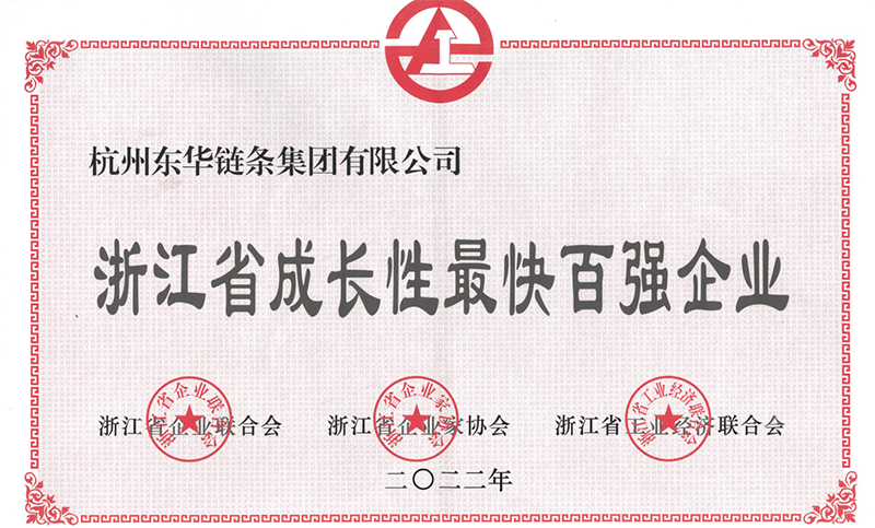 日前,東華鏈條集團被浙江省企業(yè)聯(lián)合會、浙江省企業(yè)家協(xié)會、浙江省工業(yè)經(jīng)濟聯(lián)合會授予“浙江省成長性最快百強企業(yè)”榮譽稱號。