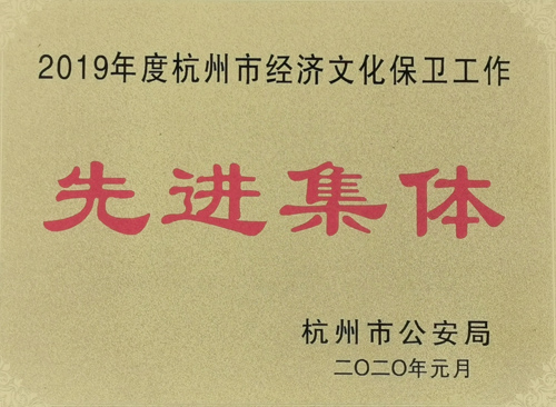 日前,公司被杭州市公安局授予“2019年度杭州經(jīng)濟文化保衛(wèi)工作先進集體”榮譽稱號。公司一直以來經(jīng)過對治安管理加大投入,尤其是強化保衛(wèi)隊伍組織建設及重點部位防盜硬件設施、技術裝備投入的有效運行,公司保衛(wèi)工作成效顯著,連續(xù)多年被授予“杭州經(jīng)濟文化保衛(wèi)工作先進集體稱號。