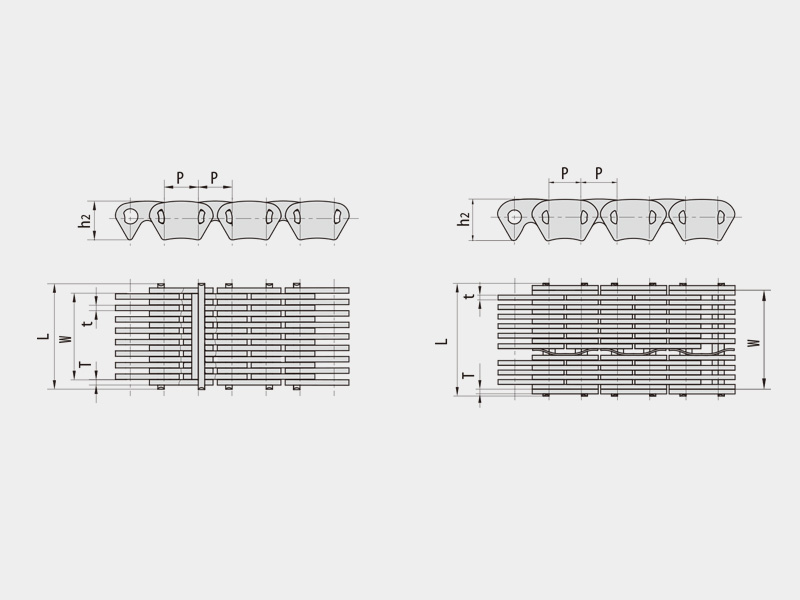 ● 按嚙合方式主要有:內嚙合、外嚙合、內外復合嚙合齒形鏈。