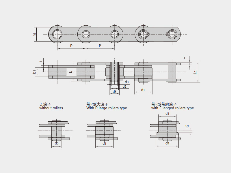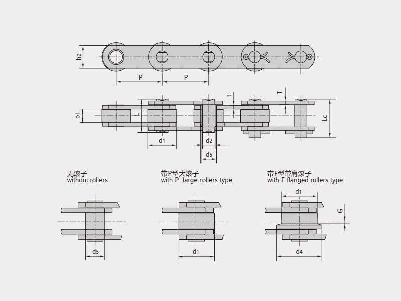 | 帶S型小滾子 | 帶P型大滾子 | 帶F型帶肩滾子 |