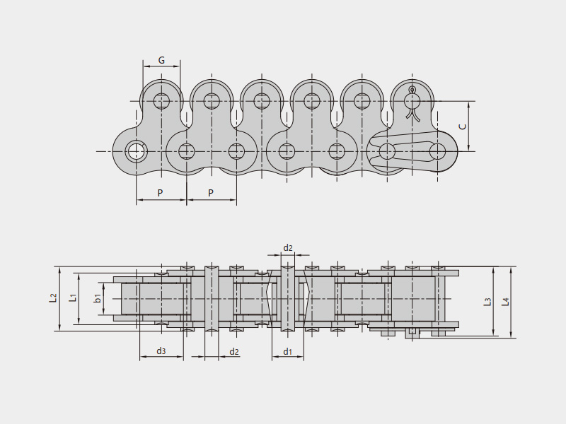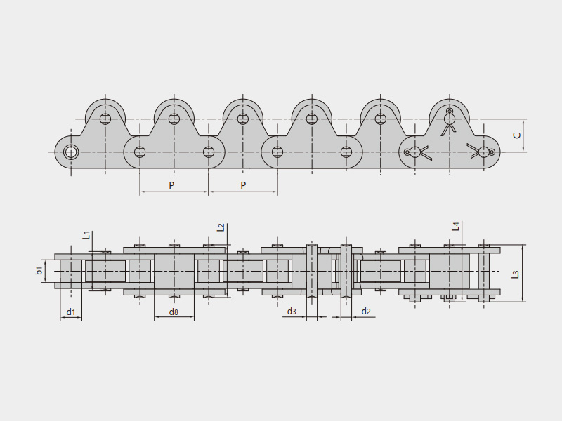 ● 自由流動(dòng)鏈?zhǔn)侵冈谶\(yùn)行過(guò)程中實(shí)現(xiàn)鏈條移動(dòng)速度不變的情況下,被輸送的物品可按照使用者的要求控制移動(dòng)節(jié)拍的鏈條;在鏈條運(yùn)行速度一定的情況下,可以根據(jù)具體使用要求調(diào)整輸送物品的速度快慢。主要包括:倍速鏈、帶大滾輪輸送鏈、帶側(cè)滾輪輸送鏈、帶特殊滾輪輸送鏈、帶頂滾輪短節(jié)距輸送鏈、帶頂滾輪雙節(jié)距輸送鏈等。