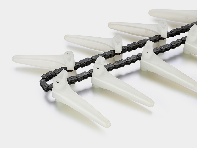 ● 水稻收割機鏈包括415系列帶撥指附件的提升鏈和節距是33mm、35mm等系列的尖齒喂入鏈;